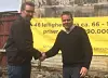 Fra kontraktssignering; Svein Adolf Gundersen, teknisk sjef HAG Anlegg AS (til venstre) og Lars Gunnar Andersen, daglig Leder i Laksesoben Eiendom AS.Foto: Finn Tjomstøl