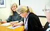 Divisjonsdirektør Kirsti Engebretsen Larssen i COWI og administrerende direktør SUS, Inger Cathrine Bryne signerer kontrakten som er det formelle startskuddet for Forprosjektet i sykehusutbyggingen i Helse Stavanger.
