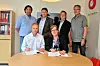 Foran Tom Brede Johansen og ordfører Hilde Thorkildsen. Bak f.v. Peabs prosjektleder Georg Blomberg, varaordfører Inge Solli, kommunens helse- og omsorgssjef Andreas Halvorsen og kommunens oppsynsmann med Døli-prosjektet, Kjell Saupstad.