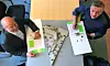 Per Morten Johansen fra Omsorgsbygg og Tor Unneland fra Varden Entreprenør setter sine signaturer på kontrakten for Kilden barnehage.