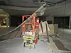 De to personene skal ha utført et omfattende hærverk med en sakselift. Den har blitt kjørt inn i delevegger og glassfasader.