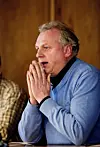 Ordfører i Lærdal Jan GeirSolheim informerte folka som er berørt av storbrannen på Lærdalsøyra om situasjonen på et informasjonmøte.