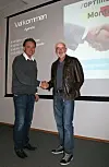 Salgssjef Tom Johnsrud for Region øst i (til venstre) og daglig leder Arvid Søgaard i Byggmesterforbundet Oslo.