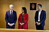 Statsminister Jonas Gahr Støre (Ap), kunnskapsminister Kari Nessa Nordtun (Ap) og klimaminister Andreas Bjelland Eriksen (Ap) under valgturneen i Stavanger onsdag. Her er de tre statsrådene i tinghuset i Stavanger. Foto: Javad Parsa / NTB