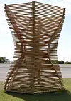 Time goes by har fasong som ett stilistisk timeglass sett fra siden, ett heksagon i grunnplan og det er meget romlig, har mer luft enn masse, matematiske prinsipper gir overraskende optiske effekter.