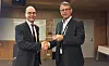 Vice President Markus Steinby fra Real Estate Coverage, Nordic (til venstre) delte ut prisen til ROM Eiendom ved adm. dir. Petter Eiken.