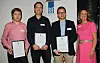 Arnt Gunvald Fredriksen (f.v.) ble Årets unge rådgiver. Her sammen med de to andre nominerte Frode Seglem og Erik Eika samt adm. dir. Liv Kari Skudal Hansteen i RIF.