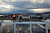Tilbake på taket på Munchmuseet har klokken passert ni på kvelden, men tilkomstteknikerne er fortsatt i sving.