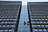 De to kollegaene skal inspisere fasaden på østsiden av det enorme bygget, og deretter levere en tilstandsrapport til oppdragsgiveren Entra. Samtidig jobber fire Høyden-ansatte med å vaske vinduer.