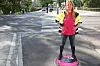 Overingeniør Vivi Paulsen på et av de rosa kumlokkene.