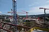 Man har god oversikt over byggeplassen fra taket til bygget. Foto: Marius Lysø