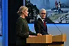 Statsminister Jonas Gahr Støre og justis- og beredskapsminister Emilie Enger Mehl legger frem stortingsmeldingen om totalberedskap under en pressekonferanse i Marmorhallen i Oslo. Foto: Rodrigo Freitas / NTB