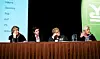 Erna Solberg, Knut Arild Hareide, Trine Skei Grande og Siv Jensen ble natt til fredag enige om statsbudsjettet for 2015. Her fra YS-konferansen i 2011.