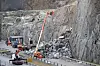 Mannskaper i arbeid etter at fjellblokka som sto igjen etter raset ved E18 ved Bommestad ble sprengt tirsdag formiddag.