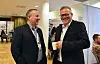 Tore Langen (t.v.) i Sigdal og Jan Rostad i Optimera hygget seg under leverandørmessen i forbindelse med Norgeshuskongressen.