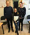 Prosjektleder Per Martin Lund (Aasen Bygg) og NTNU-studentene Ingvild Solberg og Eva Svensli.