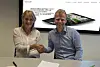 Avtaleinngåelse her ved Trondheim kommunes kart- og oppmålingssjef Mona Høiås Sæther og Norkarts innovasjonsdirektør Magnus Solberg.