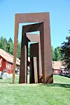 Det er den fire meter høye skulpturen «Dør inn dør ut» i cortenstål som nå har fått fast plass i parken.