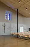 – Bygget har en krevende arkitektonisk form, og består av mange uvante takvinkler og et 19 meter høyt kirkespir Dette førte blant annet til en del uvanlig stillasebruk. Men alt i alt har prosjektet gått veldig greit, og vi har lyktes med å følge fremdriftsplanen. Da er det naturligvis veldig hyggelig å høre at byggherren er blitt såpass fornøyd med resultatet. Etter fundamenteringen satte vi opp et stålskjelett med bindingsverk. Det innvendige gulvet er slipt og polert betong, mens både de innvendige og utvendige veggene er behandet med Sto fasadepuss, sier Wolden.