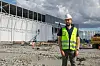 Audun Tharaldsen, logistikksjef i Optimera, foran bygget under oppføring.