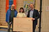 Prosjektleder Anders Løkke i Undervisningsbygg, byråd for kultur, idrett og frivillighet Rina Mariann Hansen og rektor Audun Aardal med Årvoll skoles gamle plantegninger fra 1954.