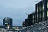 Bildet er fra 2025 og viser bygget med fasadeplater og vinduer på plass.
