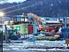 Melhus 20230106. En 50 meter høy kran har veltet over kjøpesenteret Melhustorget i Trøndelag
