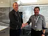 Ronny Johnsen (til høyre) er ansatt som leder av den nye klimaavdelingen i , og ønskes velkommen av daglig leder Greif Sæther.