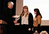 Silje T. Urke mottar pris for årets beste masteroppgave i akustikk av leder i RIFs ekspertgruppe akustikk Tore Moen (Brekke&Strand Akustikk) og Ivonne Verstappen (Norconsult). Foto: RIF