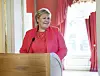 Statsminister Erna Solberg oppsummerer under sin halvårlige pressekonferanse i statens representasjonsbolig.