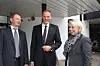 Næringsminister Monica Mæland (H) var i perlehumør da hun møtte to av Powerhouse-sjefene – Øyvind Mork (til venstre) og Klaus-Anders Nysteen - under åpningen på Kjørbo i Sandvika i dag.