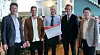 Fra venstre, høyskolelektor Arjen Kraaijeveld, prisvinnerne Joachim Skogseide, Christer Rake og Pål Rud, og intern veileder professor Hans Jørgen Dahl.
