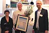 Thorjørn Larssen fra NIVA/Vannforeningen (til høyre) og Dordi Skjevling fra COWI/ delte ut Vannprisen 2015 til Asle Aasen.