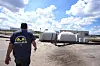 Ron Hubbard, eier Atlas Survival Shelters, går ut av døren i en bunker selskapet hans bygger på fabrikken i Sulphur Springs i Texas. Foto: LM Otero / AP / NTB