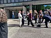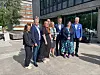 Utenfor NHO-bygget sto representanter fra en hurtigarbeidende arbeidsgruppe fra byggenæringen og Kommune-Norge oppstilt, klare til å ta imot kommunal- og distriktsminister Kjersti Stenseng (Ap).