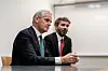 Statsminister Jonas Gahr Støre (Ap) og helse- og omsorgsminister Jan Christian Vestre la fram planen for nye Mjøssykehuset for Innlandet lørdag. Foto: Thomas Fure / NTB