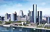 General Motors og Bedrock vil utvikle General Motors sitt gamle hovedkvarter i Renaissance Center til et nytt område med næring og bolig. Illustrasjon: Bedrock