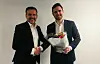 Konsernsjef i , Torben Sneve (til venstre) og vinner av konkurransen om å være konsernsjef i sommer, August Németh Winther.