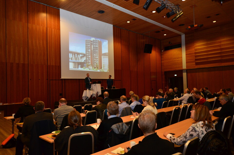 Markedsutvikler i Saint-Gobain Ecophon, Carsten Svensson, talte for fullsatt sal i Glavas seminar om lydisolasjon og akustikk.