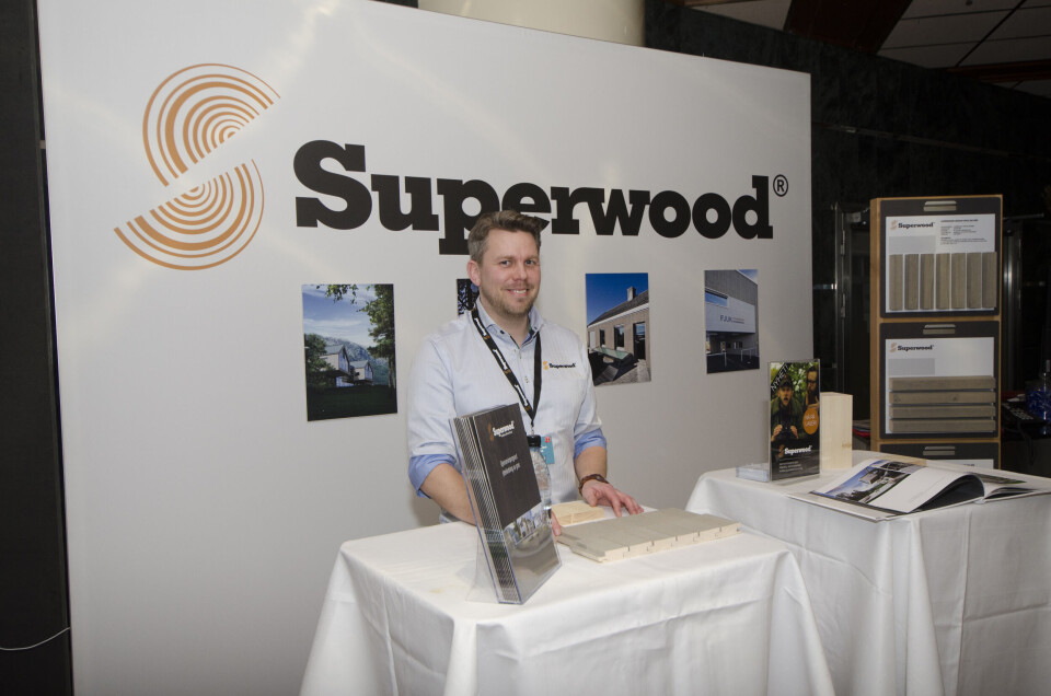 Magnus og Christian Chramer besøker Moelven-stand før åpningen av Byggedagene 14. mars. Foto: Svanhild Blakstad