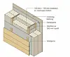 Yttervegg med gjennomgåande stenderar av I-profiler. Ill.: Byggforskserien