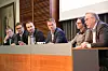 Fra venstre: Advokat Arild Skage i Kluge advokatfirma, konsernadvokat Lars Kristian Skjelvan i Skanska, konsernsjef Ståle Rød i Skanska Norge, konserndirektør juridisk Peter Kvisgaard i BetonmastHæhre, fagsjef kontrakt i utbyggingsdivisjonen i Bane NOR, Kari Stangeby Noer og advokat Arne Engeseth i DLA Piper diskuterte NTK torsdag ettermiddag.