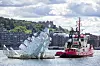 Skulptur i sig mot Operaen måtte slepes på plass