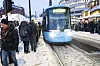 Snøkaos i hovedstaden. Kollektivtrafikken sliter med innstilte avganger og folk står i kø på trikkeholdeplassen ved Jernbanetorget.