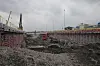 Byggegropa for jernbanekulverten i sør avistes med ståldragere. Foto: Frode Aga