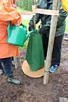Det er mange som planter trær i forbindelse med et barns fødsel eller en annen stor anleding. Gartnerstudentene på Vea viser hvordan det skal gjøres. (Bildekarusell)