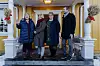 Statsminister Erna Solberg, finansminister Siv Jensen, kulturminister Trine Skei Grande og nestleder i KrF, Kjell Ingolf Ropstad, utenfor Granavolden Gjæstgiveri på Hadeland hvor regjeringsforhandlingene startet onsdag.