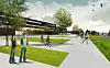 Illustrasjonen viser Heimdal videregående skole, som vil bli et pilotbygg i ZEB. Ill.: PKA Arkitekter, Asplan Viak og Lusparken Arkitekter