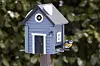 Multiholk Blått hus er laget av massivt, værbestandig tre og måler 19 x 19 x 25 cm