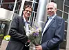 Sector Manager Carsten Krøger i Achilles StartBank overrakte blomster og uttrykte en stor takk til Støa for hans innsats gjennom mange år for å få til en mer åpen og transparent byggenæring.